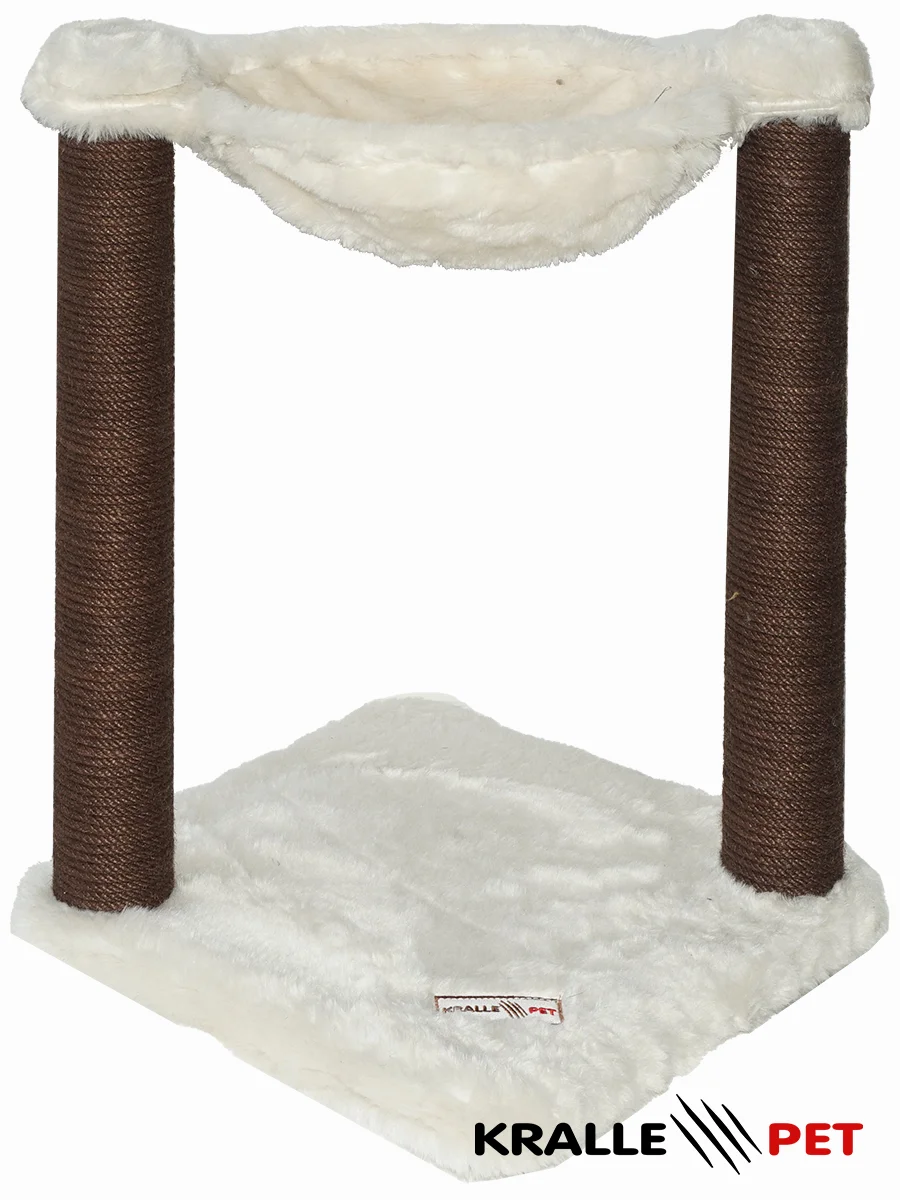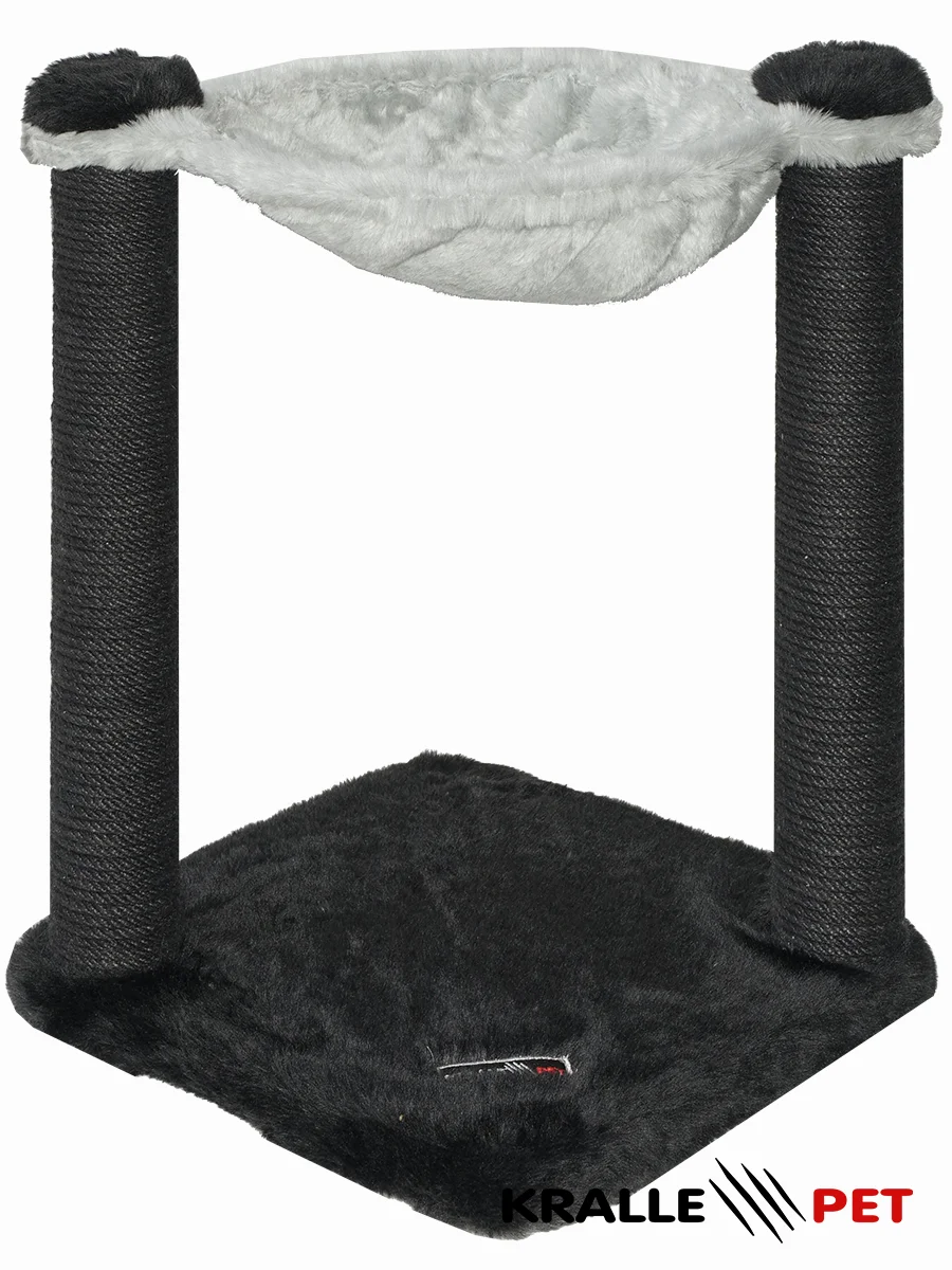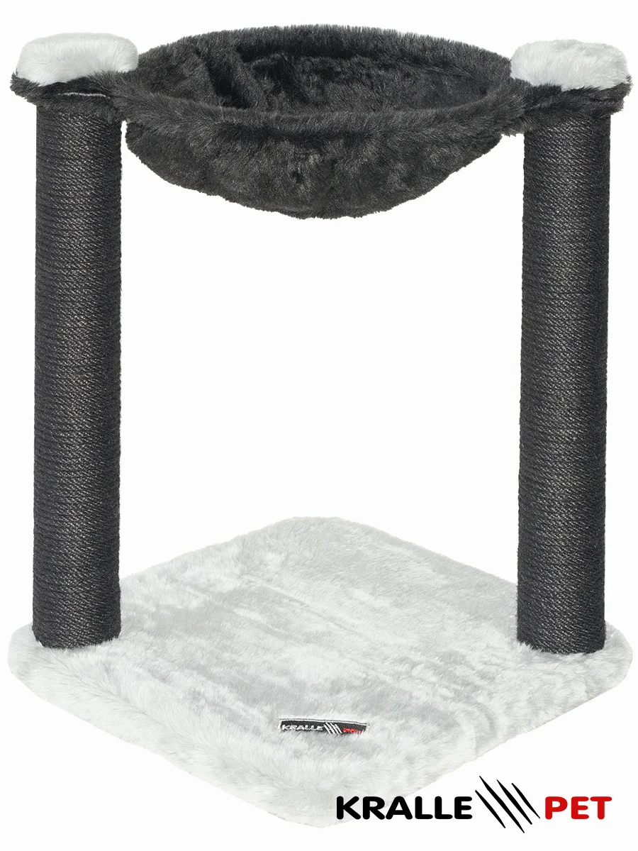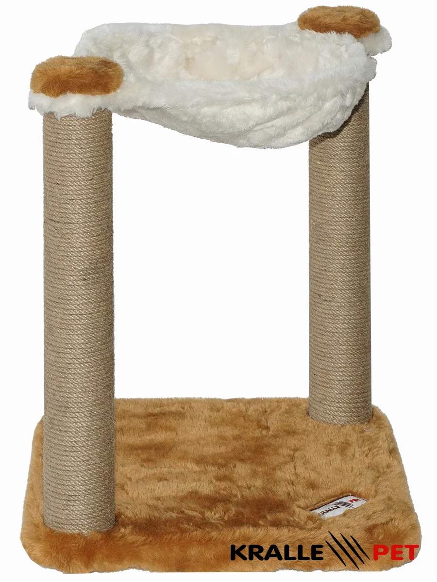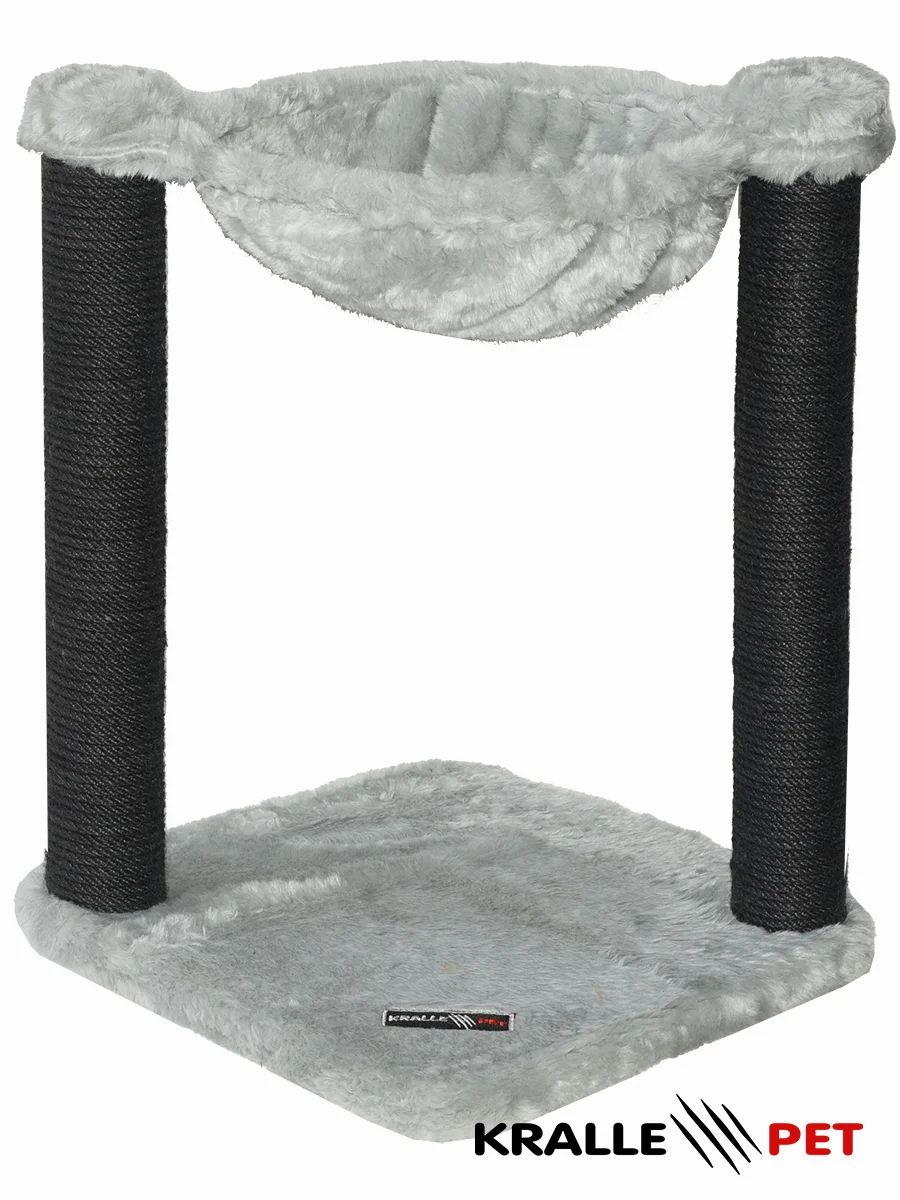 Cat tree with two scratching posts and a hammock