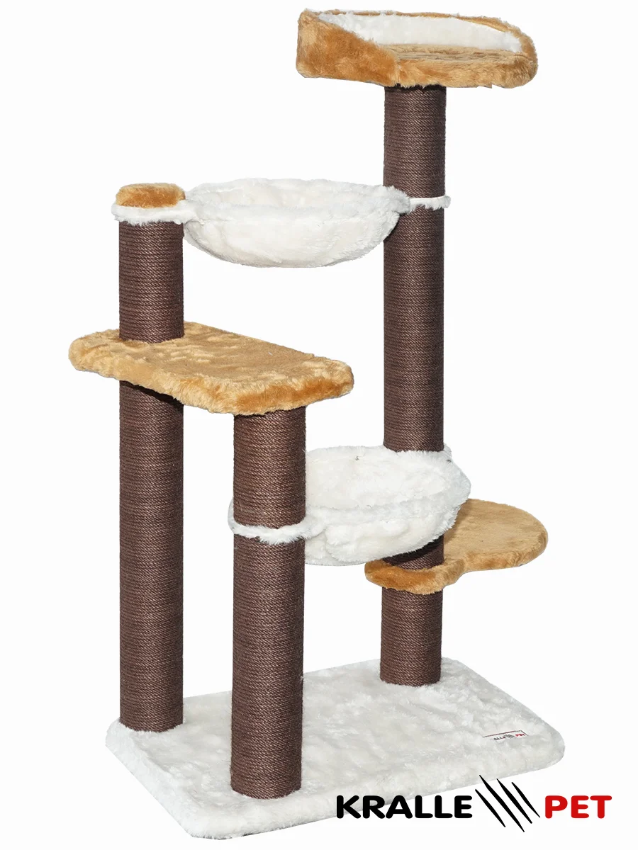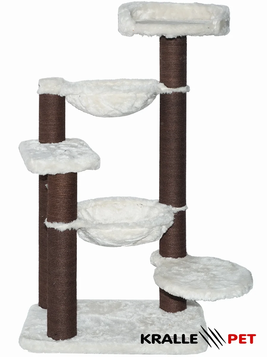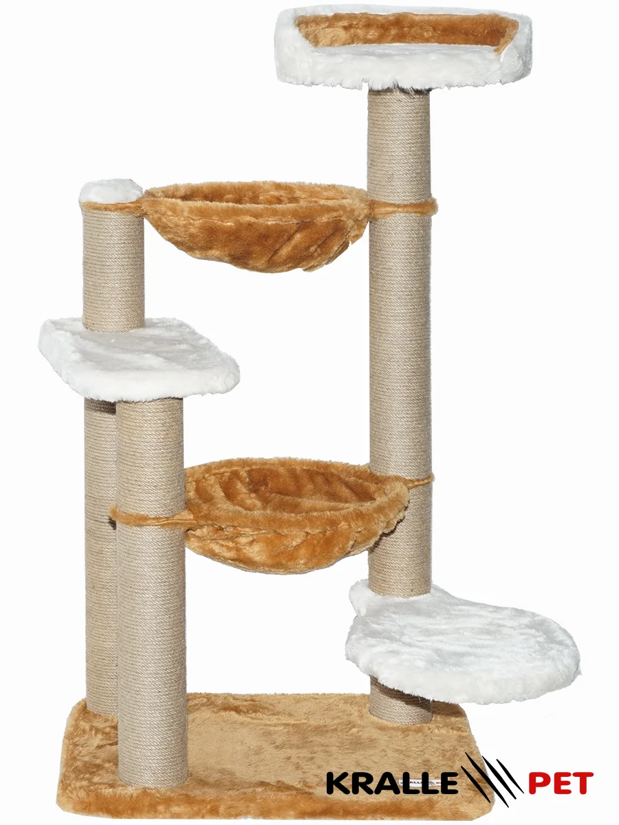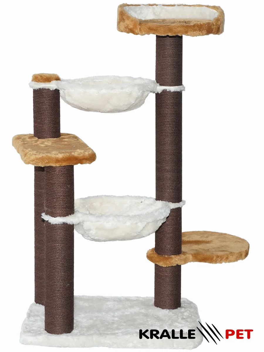 Drapak dla kota w formie drzewka z trzema słupkami do drapania, hamakami, częścią wypoczynkową