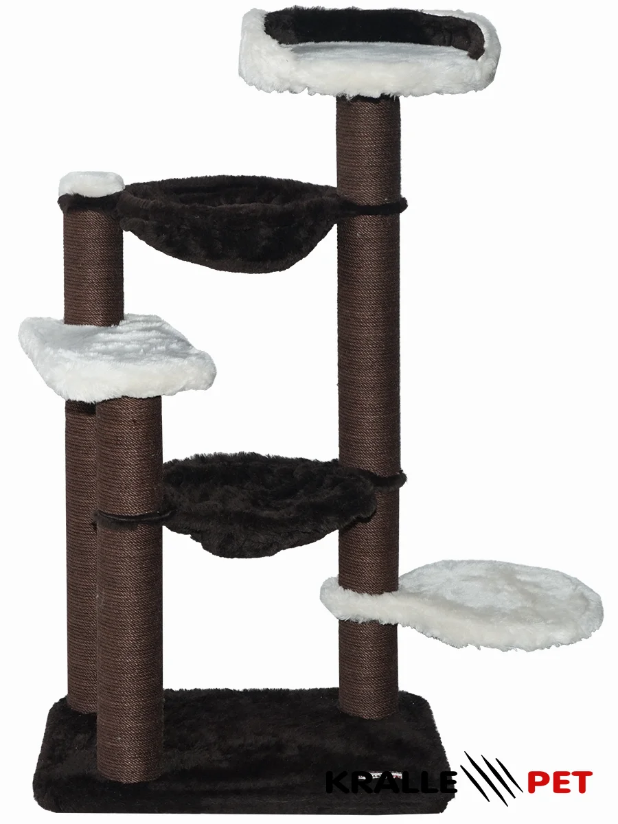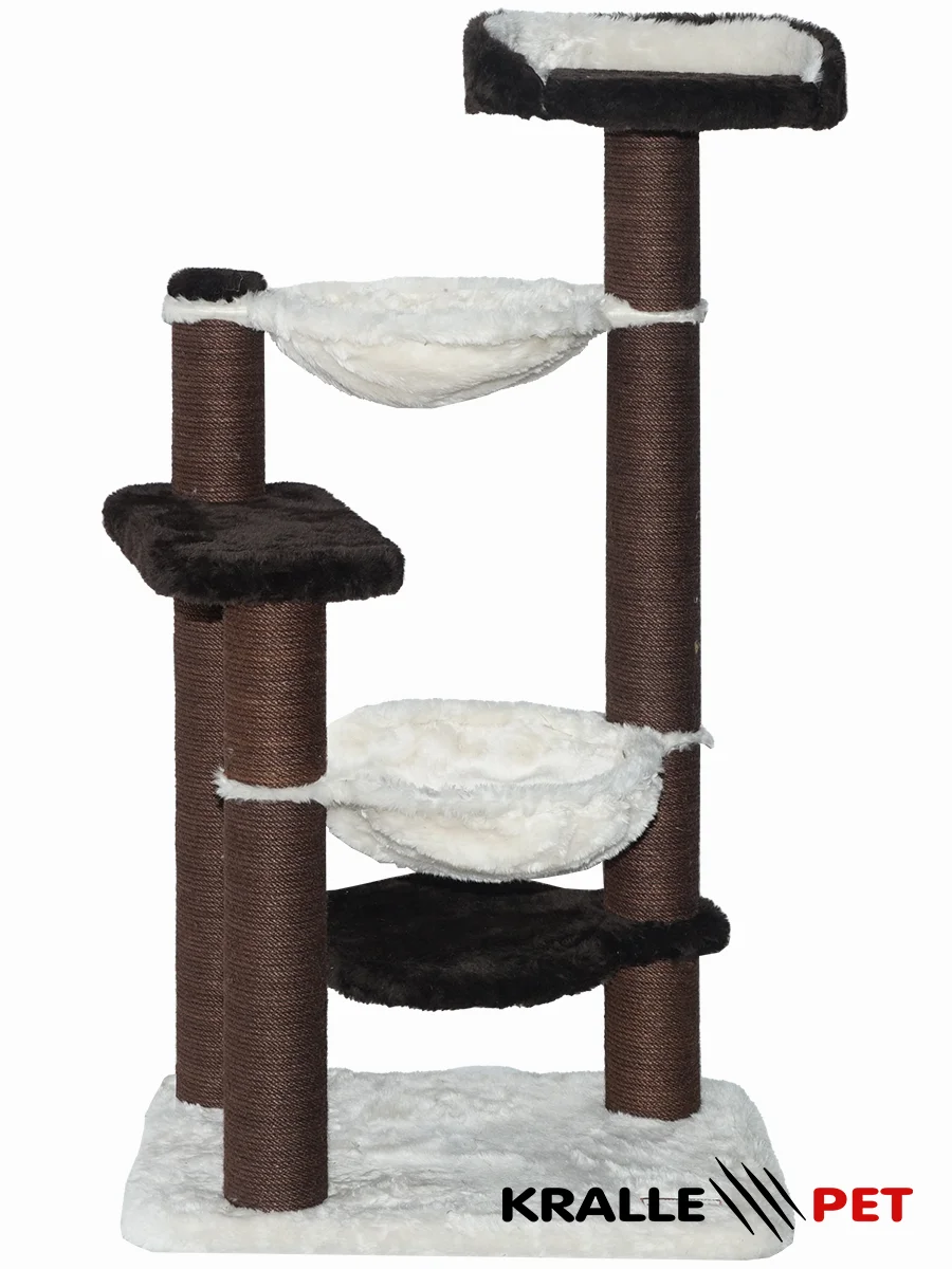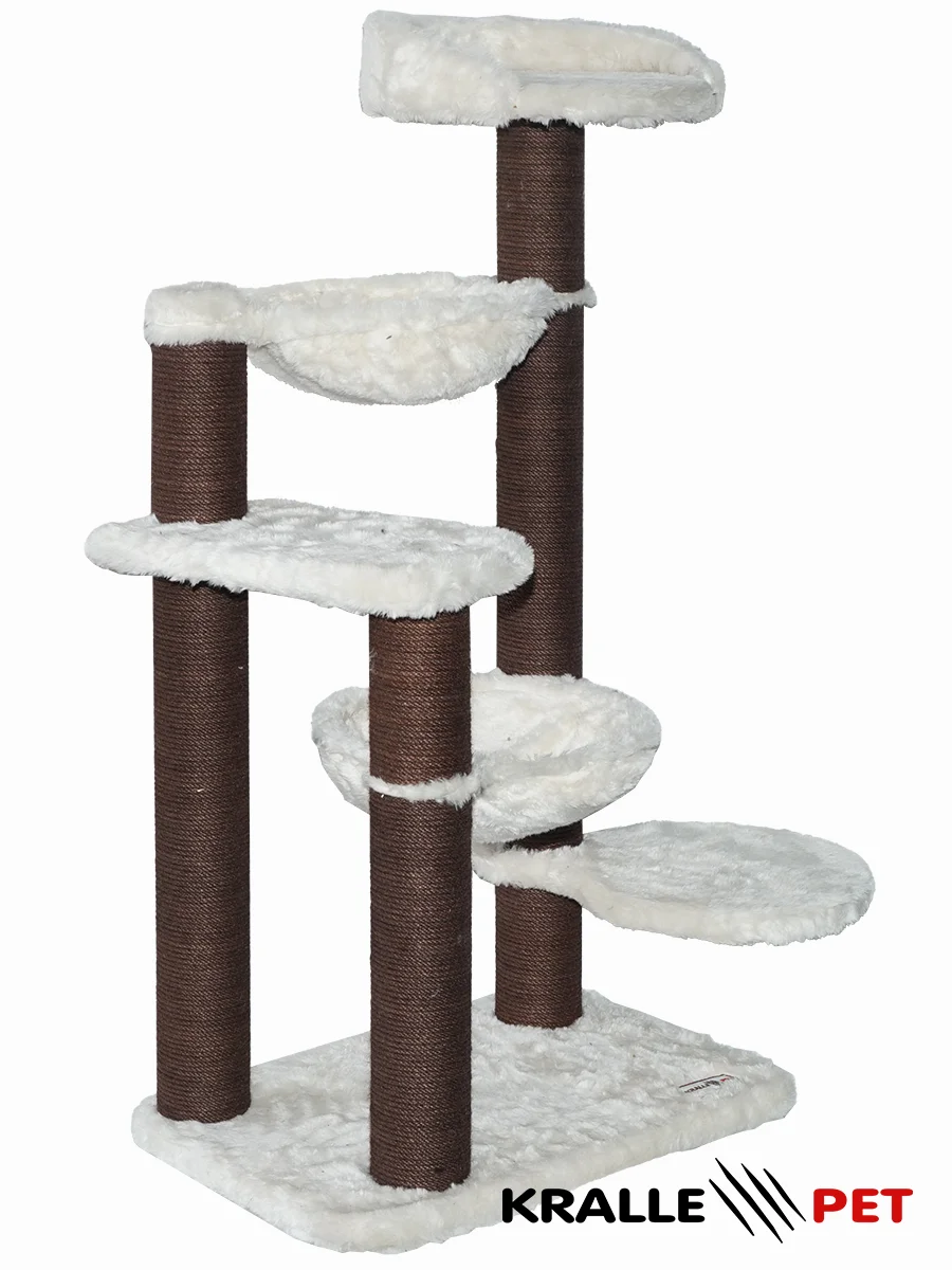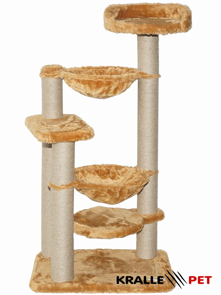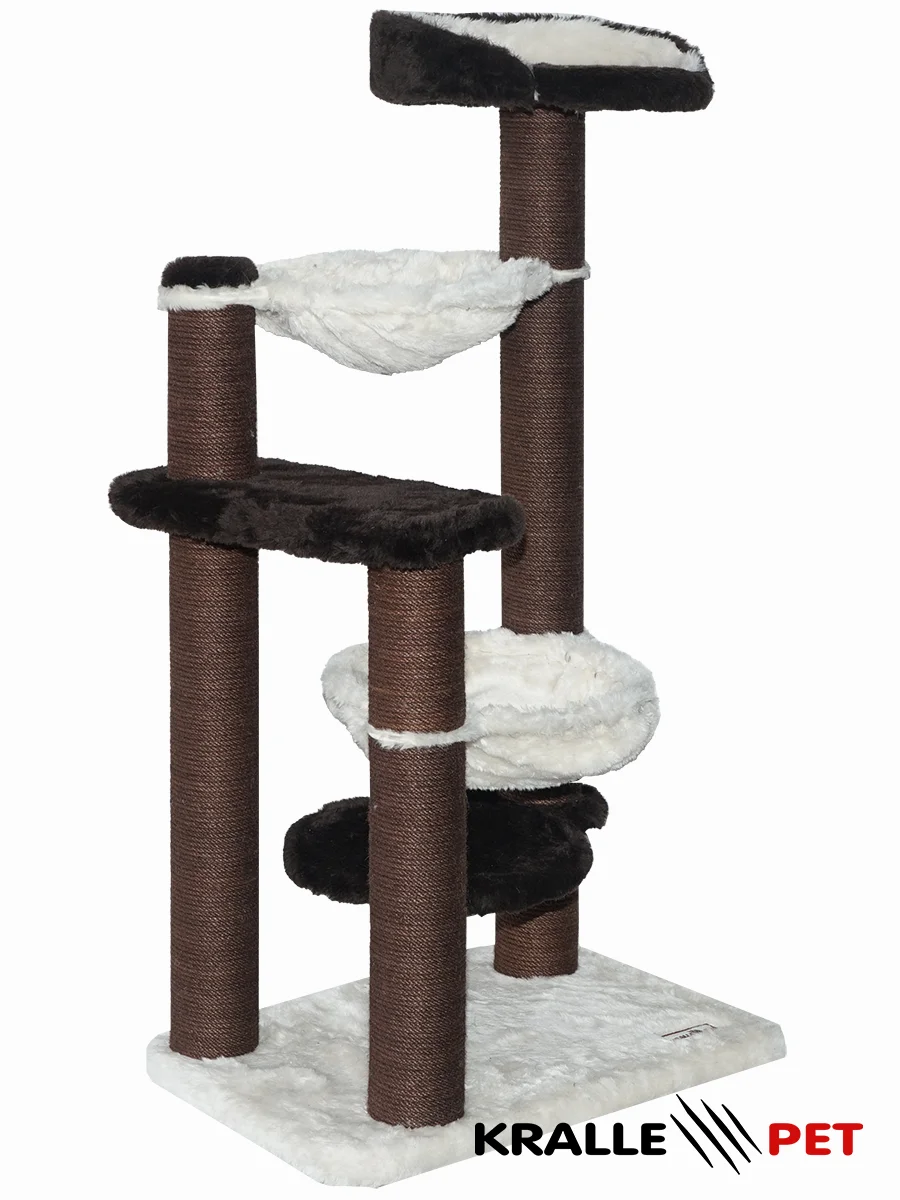 Drapak dla kota w formie drzewka z trzema słupkami do drapania, hamakami, częścią wypoczynkową