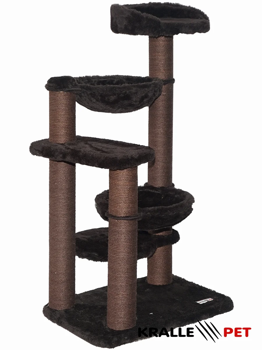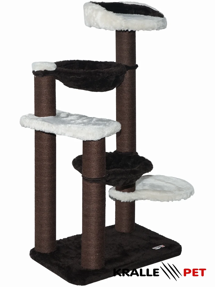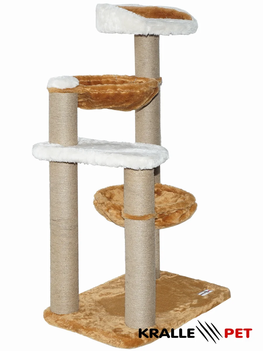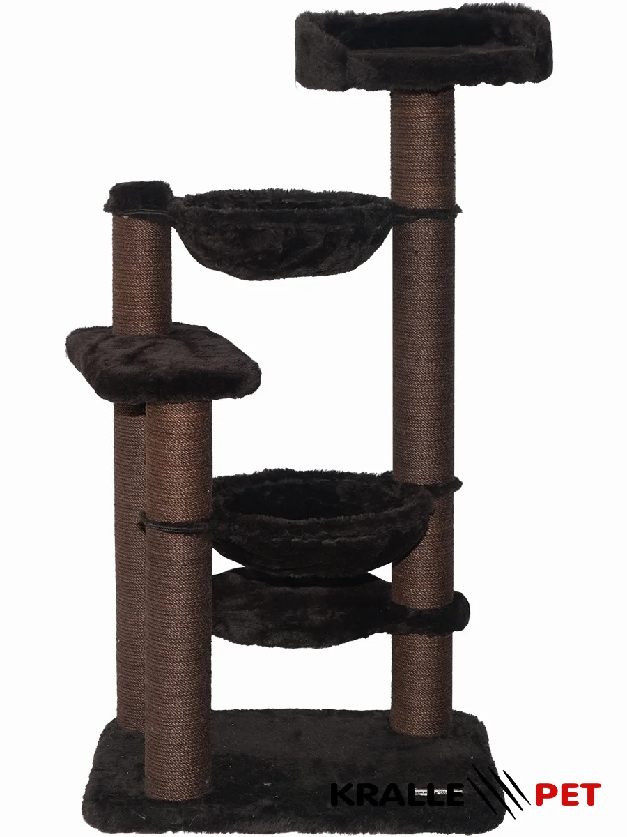 Drapak dla kota w formie drzewka z trzema słupkami do drapania, hamakami, częścią wypoczynkową